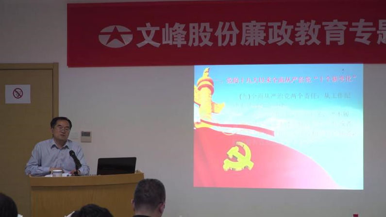 5月16日,文峰股份特邀南通市紀委常委湯明文在文峰商學院開展廉政教育專題講座。公司總經理室全體成員及相關部門負責人、各分公司總經理助理以上高管人員參加了會議。
