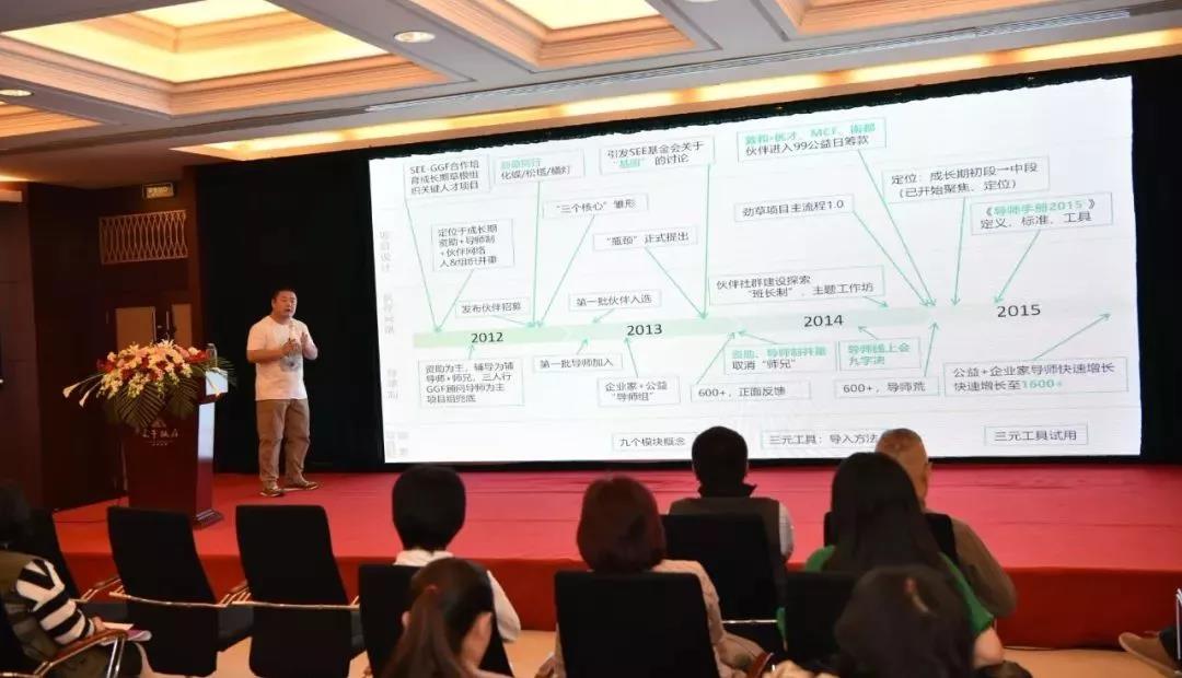 阿拉善SEE基金會行業(yè)組高級項目經(jīng)理王亦慶將勁草同行七年的發(fā)展概括為兩個階段。2012~2015年屬于第一階段,在這一階段,項目提出了資助、導師制、伙伴網(wǎng)絡三大核心,確定了勁草1.0版本的服務體系;2016~2019年屬于第二階段,在這一階段勁草同行發(fā)生很多變化,并逐漸形成一套特有的產(chǎn)品與服務。