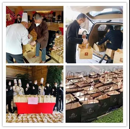 接到指令,兩家飯店積極采購新鮮貨源,調配人手,通知大廚加班加點,沒有員工分裝,飯店總經理、部門經理們個頂個的上!沒有運輸車輛,文峰飯店安排商務車一趟趟的來回運。