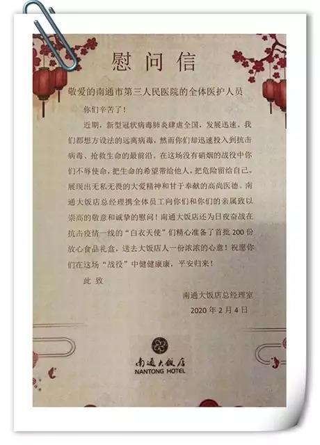 最終,公司決定以南通市文峰慈善公益基金會的名義向南通這兩家醫院提供后勤物資保障,盡可能讓這些奮戰在一線的醫護人員解除后顧之憂。