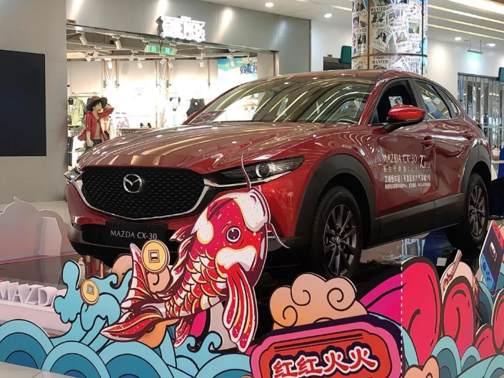 幸運錦鯉C位出道!幸福消費月期間,顧客只要消費滿99元,即有機會贏新款紅色馬自達一年使用權,紅運永相伴。