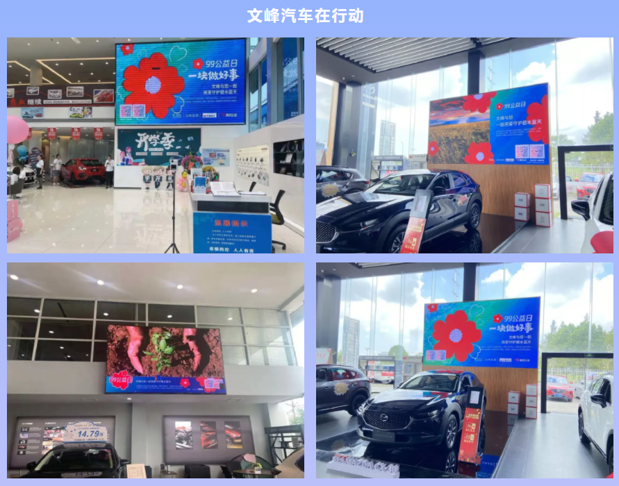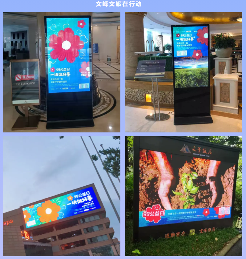今年的“99公益日”,江蘇文峰集團(tuán)繼續(xù)攜手阿拉善SEE,一起聚焦環(huán)保公益行業(yè)的發(fā)展,一塊做好事,為“勁草同行”“創(chuàng)綠家”兩個(gè)項(xiàng)目進(jìn)行全力支持。集團(tuán)旗下的文峰飯店、有斐大酒店、南通大飯店、南通文峰廣場(chǎng)、上海文峰廣場(chǎng)、文峰百貨、文峰電器、文峰超市以及文峰汽車等近50家門店的人流量聚集商圈,均通過(guò)戶內(nèi)外LED屏或背景墻、易拉寶等渠道投放公益廣告,同時(shí)面向廣大顧客開放線下促銷活動(dòng),參與愛(ài)心捐助將有機(jī)會(huì)獲得公益日周邊。