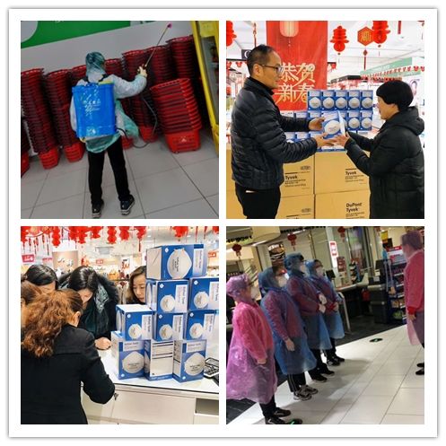 文峰大世界各大門店為員工準備了體溫檢測器、口罩、消毒水、酒精、洗手液、一次性手套、雨披等防護物資,并且根據使用情況不斷進行補充,全面保障員工的健康與安全。