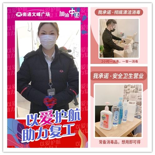 2月28日,南通文峰廣場恢復營業。針對復工,南通文峰廣場成立了疫情防控工作小組,明確職責,制定方案,落實執行。對所有復工員工14天的行程軌跡進行嚴格排查,不符合要求的員工一律不許復工。南通文峰廣場準備了充足的防疫物資,包括口罩、測溫槍、消毒水、手套、雨披等。